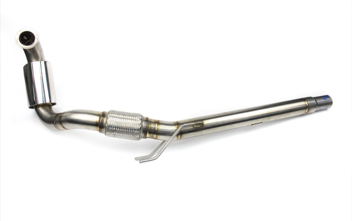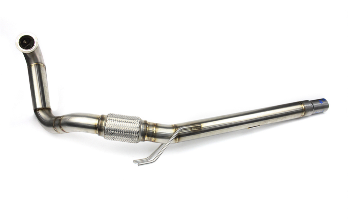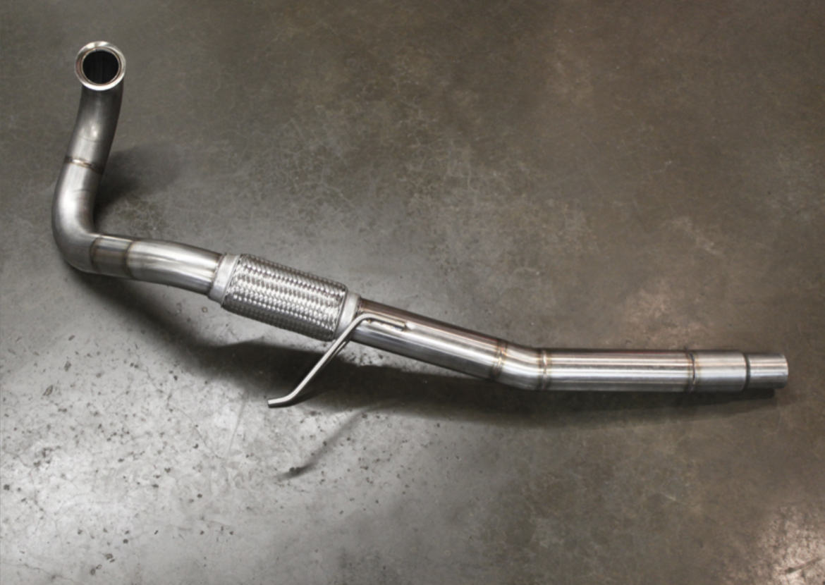 A 2.5″ Stainless Steel De-Cat Downpipe a direct bolt on replacement for the Standard Downpipe as well as removing the Catalytic Converter (CAT) and Diesel Particulate Filter (DPF) on the Mk5 Platform vehicles with the 1.9 TDi BRM Engine.